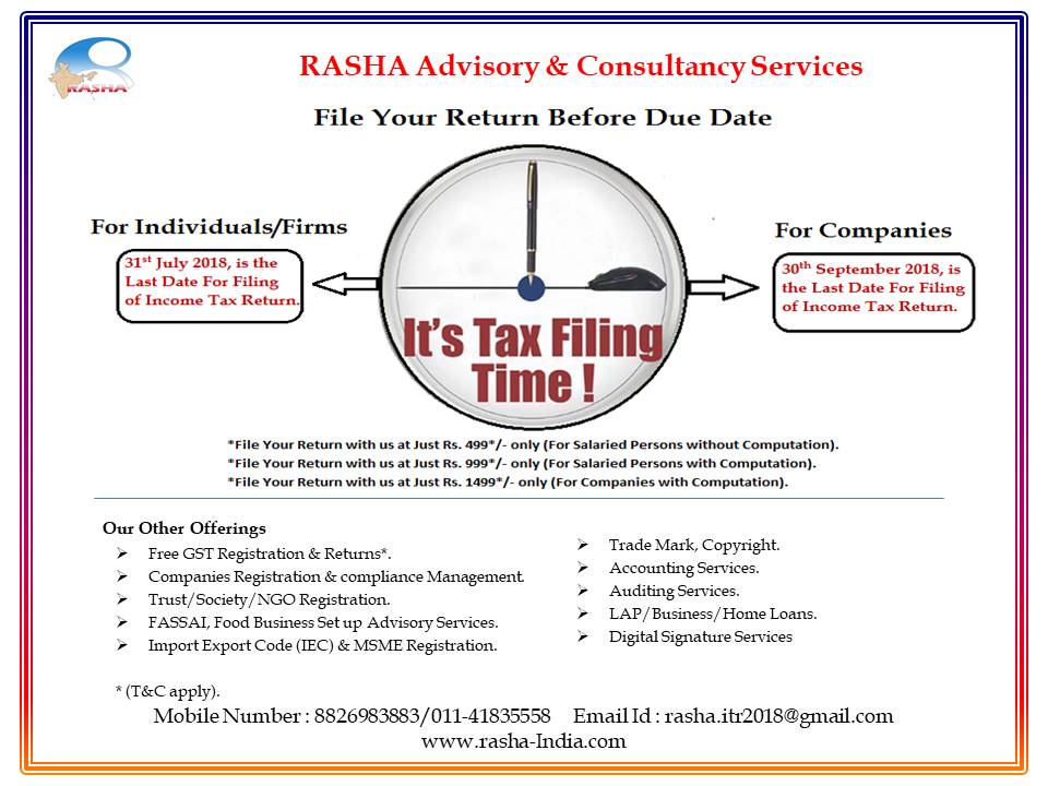 We at RASHA provides following Income Tax/Direct Tax related services: